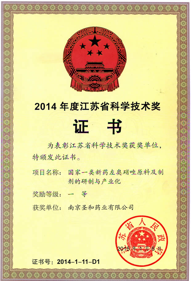 2014南京市新興產(chǎn)業(yè)重點推廣應(yīng)用新產(chǎn)品證書