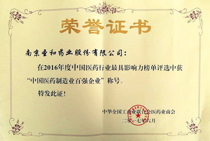 2016年度中國醫(yī)藥制造業(yè)百強(qiáng)企業(yè)