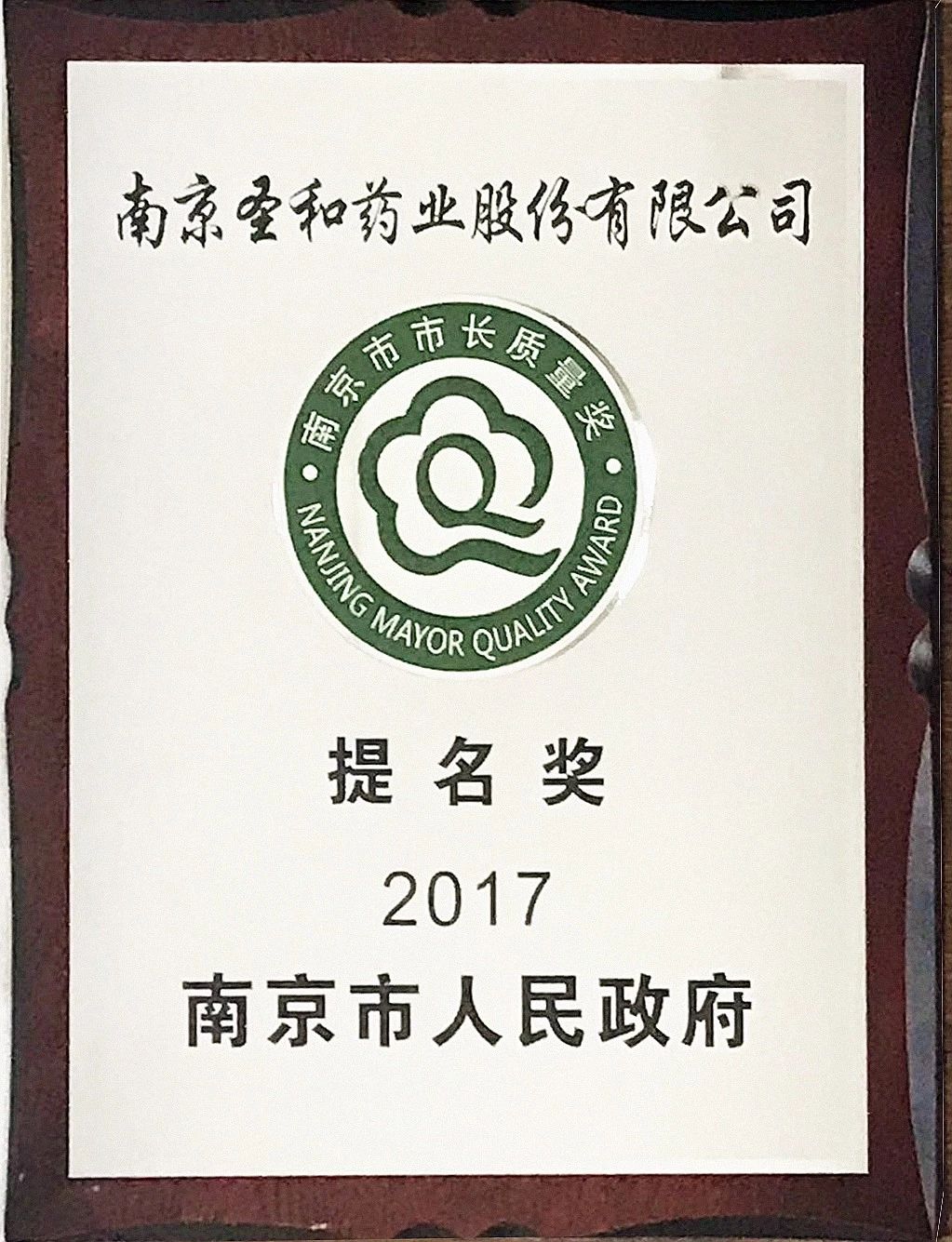 南京市市長質(zhì)量獎(組織)提名獎