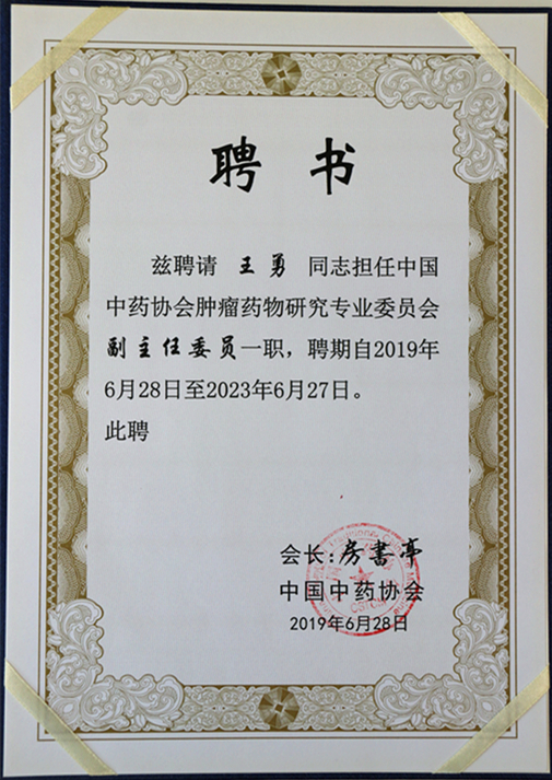 中國中藥協(xié)會腫瘤藥物研究專業(yè)委員會副主任委員