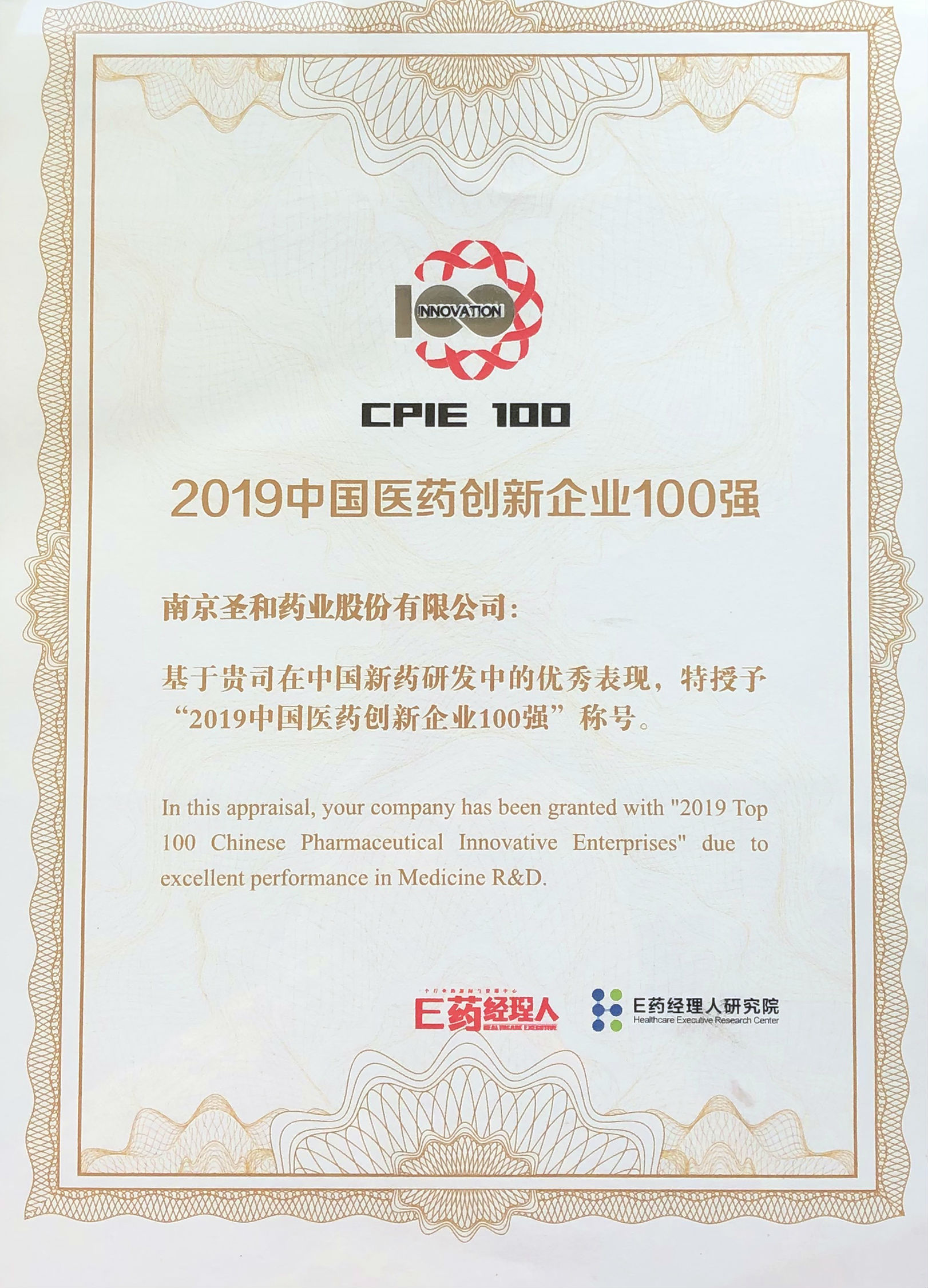 2019年中國(guó)醫(yī)藥創(chuàng)新企業(yè)100強(qiáng)